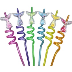 K314 Großhandel Meerjungfrau Glitter Kunststoff Strohhalme Topper Abdeckung für Familien kinder Bar Party Dekoration Stroh Charms
