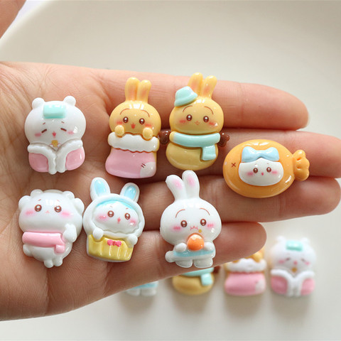 K521 Popular dibujos animados invierno blanco conejo resina Flatback cabujón animales juguetes para vacaciones fiesta DIY Decoración