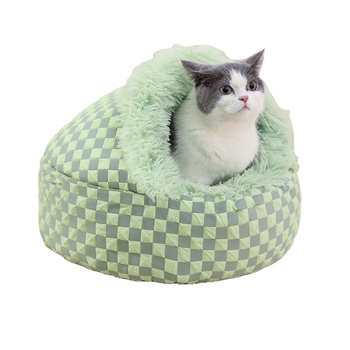 Nidos de mascotas cálidos de invierno T2085, nidos de algodón de felpa largos para gatos semicerrados, nido grueso