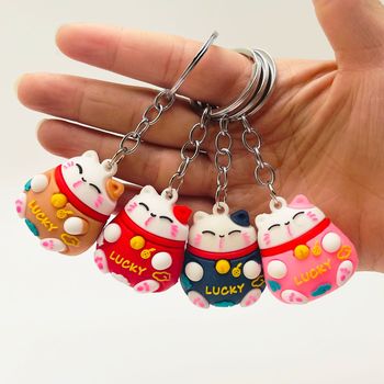 S711 Cartoon Lucky Cat portachiavi ciondolo Fun Cute Crane Machine Creative Doll Gift For Mom Gue Ring portachiavi ornamenti