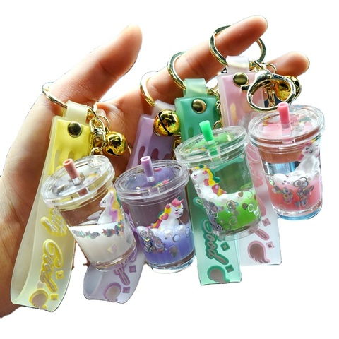 T675 Koreaanse Versie Vloeibaar Drijfzand Eenhoorn In Olie Sleutelhanger Auto Sleutelhanger Ketting Paar Klein Geschenk