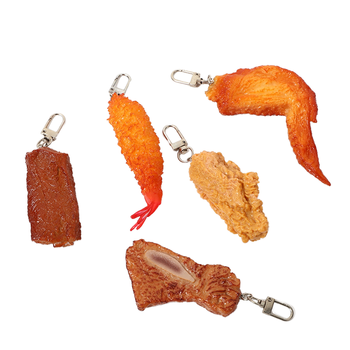 Hot New 3D mô phỏng thịt Keychain chiên gà Mặt dây chuyền thịt nướng thực phẩm cho ba lô trang trí làm cao su sinh nhật